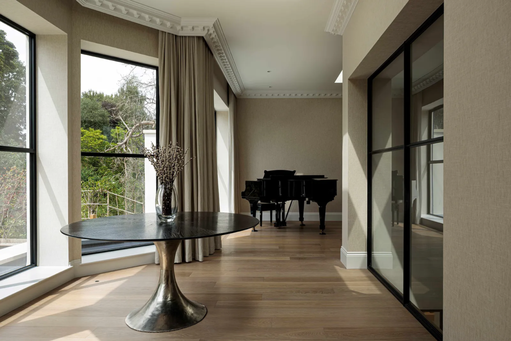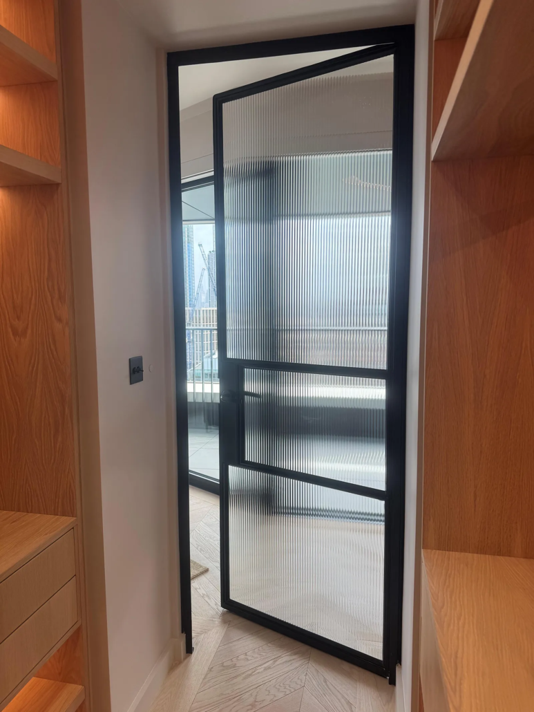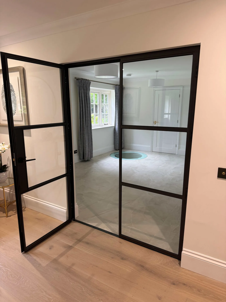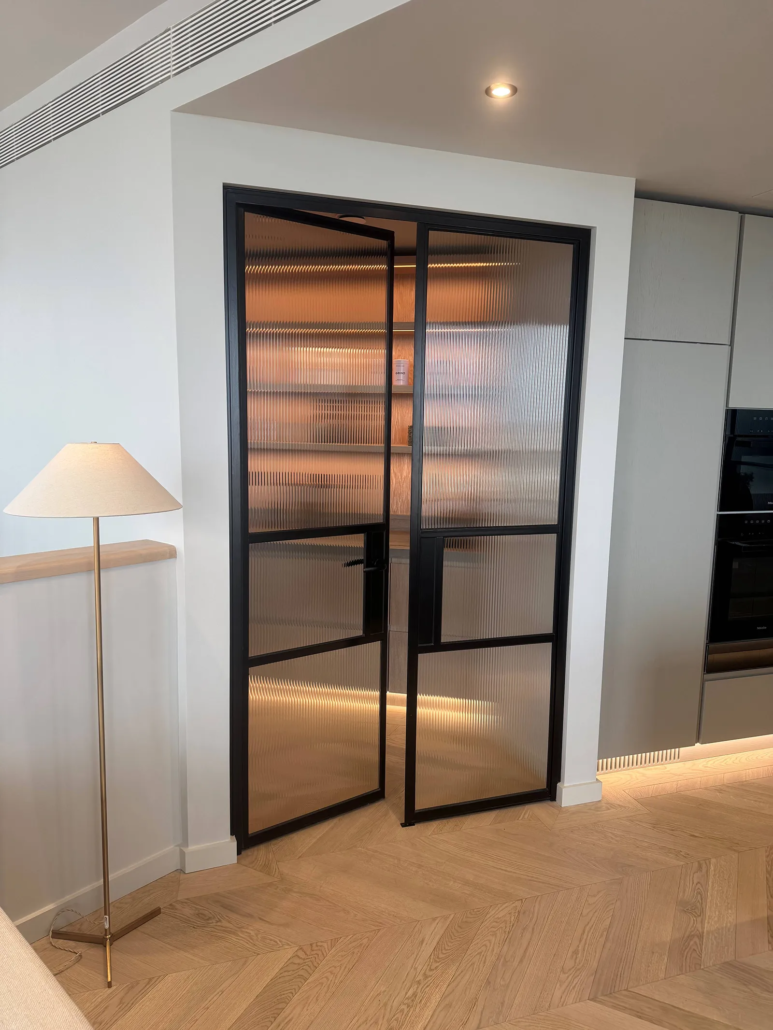 During the later stages of the project, EHG Design proposed extending the same design system to the internal doors to create a cohesive aesthetic throughout the property. Despite the requirement for fire-rated performance, the solution remained viable: the W20 profiles used for the external doors are also approved for FD30/0 internal applications when paired with 7.2 mm clear Pyrodur glass.